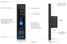 The Ubiquiti UniFi Access Reader G3 Pro is a premium NFC reader and intercom with a 4.7-inch touchscreen. It supports NFC cards, mobile unlock, and PIN access, featuring a built-in camera, microphone, and speaker. PoE-powered and IP55-rated, it ensures secure indoor or outdoor access control integration.